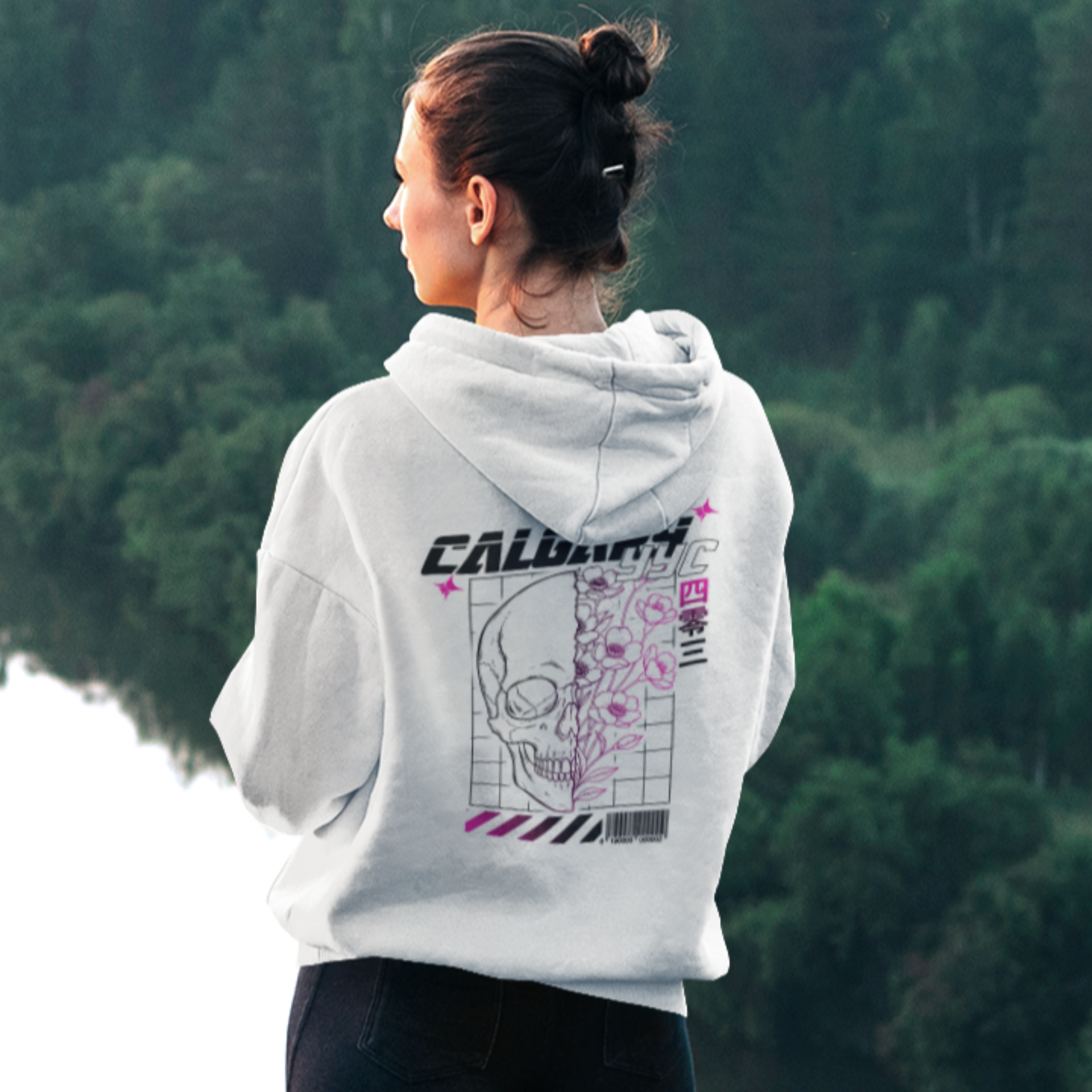 BLACK SKULL FLOWER HOODIE